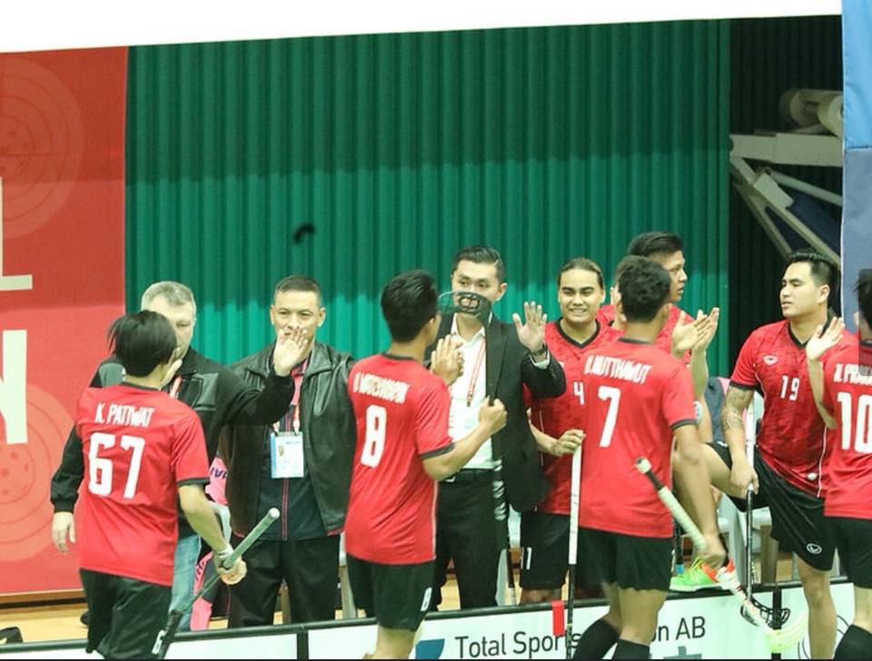 นักกีฬาฟลอร์บอลชายทีมชาติไทย อันดับ 22 ของโลกอยู่ในสายเอ ประเดิมเกมแรกพบทีมชาติจีน อันดับ 38 ของโลก ซึ่งเกมแรก จีนพ่ายเกาหลีใต้ไป 0-14 เริ่มเกม เกมการเล่นไทยเป็นไปตามฟอร์มพับสนามบุกแหลก ทำคะแนนนำไปก่อน 10-0 ในช่วงเวลาการแข่งขันที่ 1 โดยการทำประตูของ สันติพงษ์ สุขเกษม 4 ประตู ประกาศิต นามสว่าง 2 ประตูและวัชรพล อ่อนสุข, สัตยา ภูสีน้อย, อเล็กซานเดอร์ รินเนฟาลค์, ปวัฒน์ ไทยดิษฐ์ อีกคนละ 1 ประตู