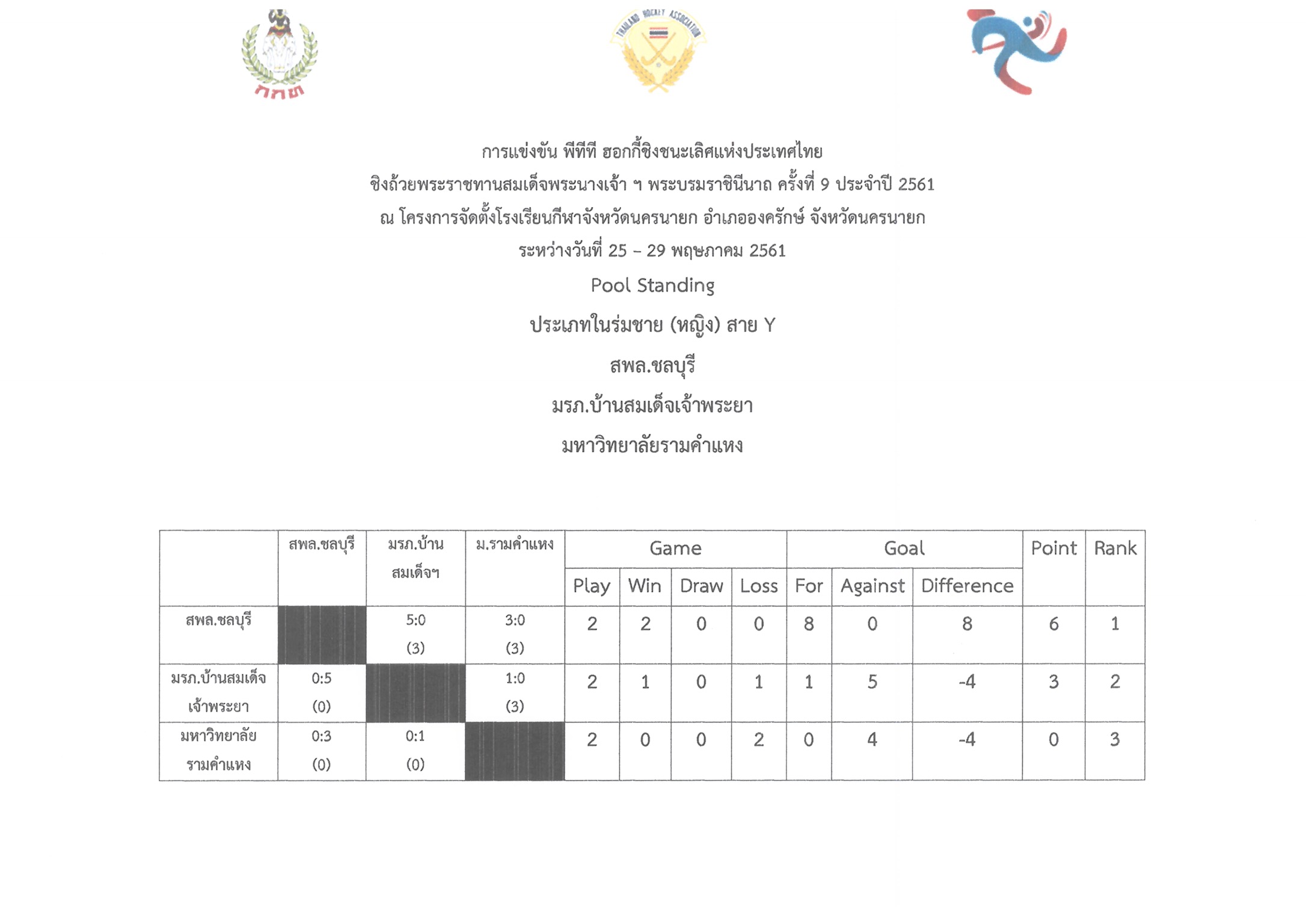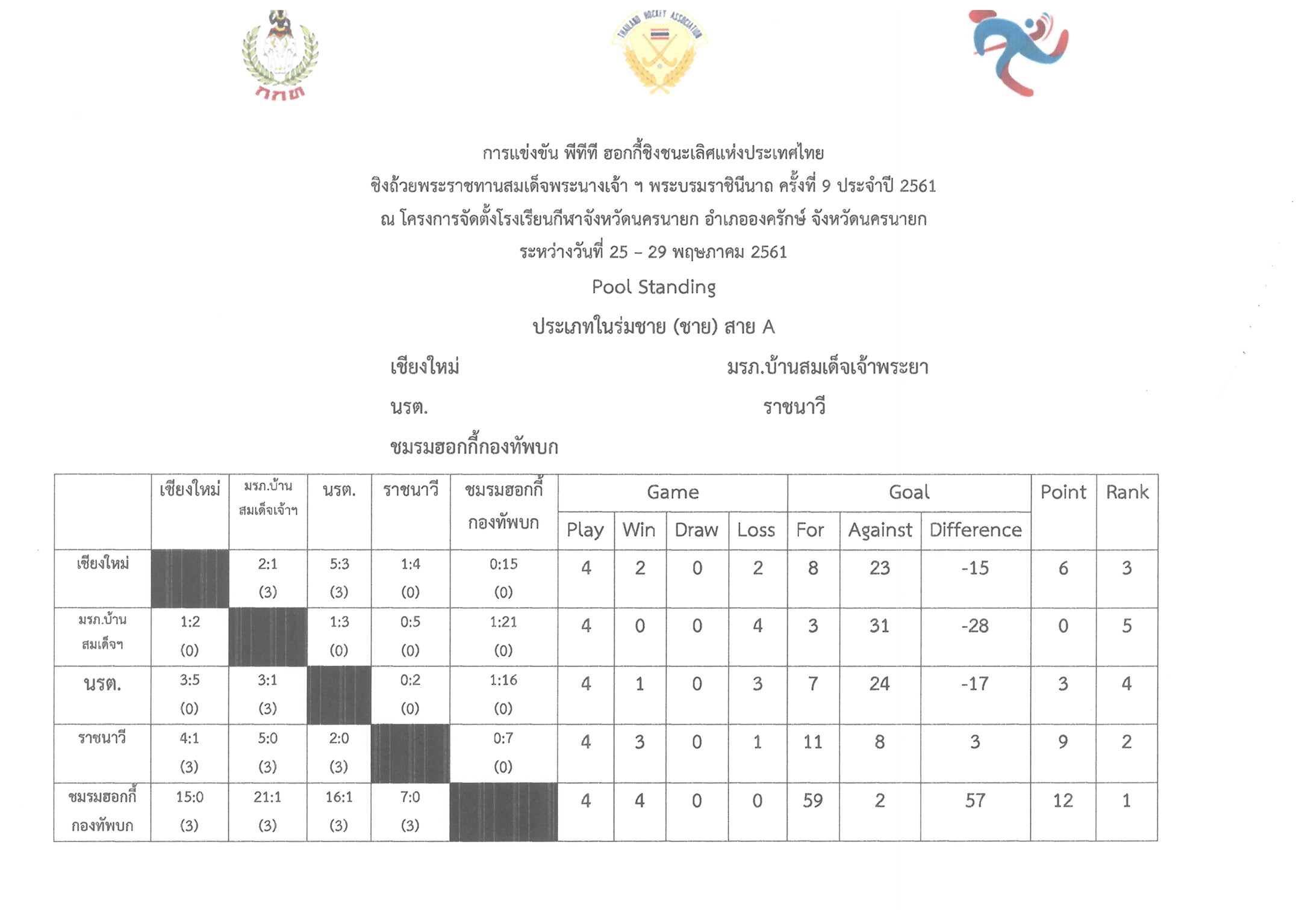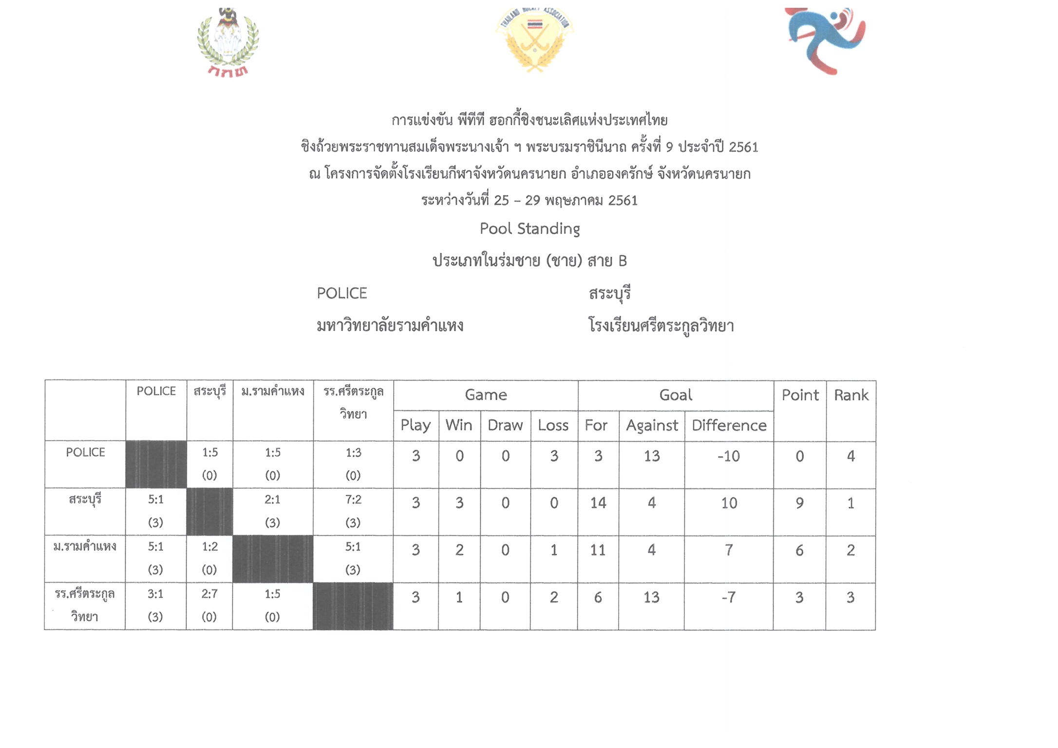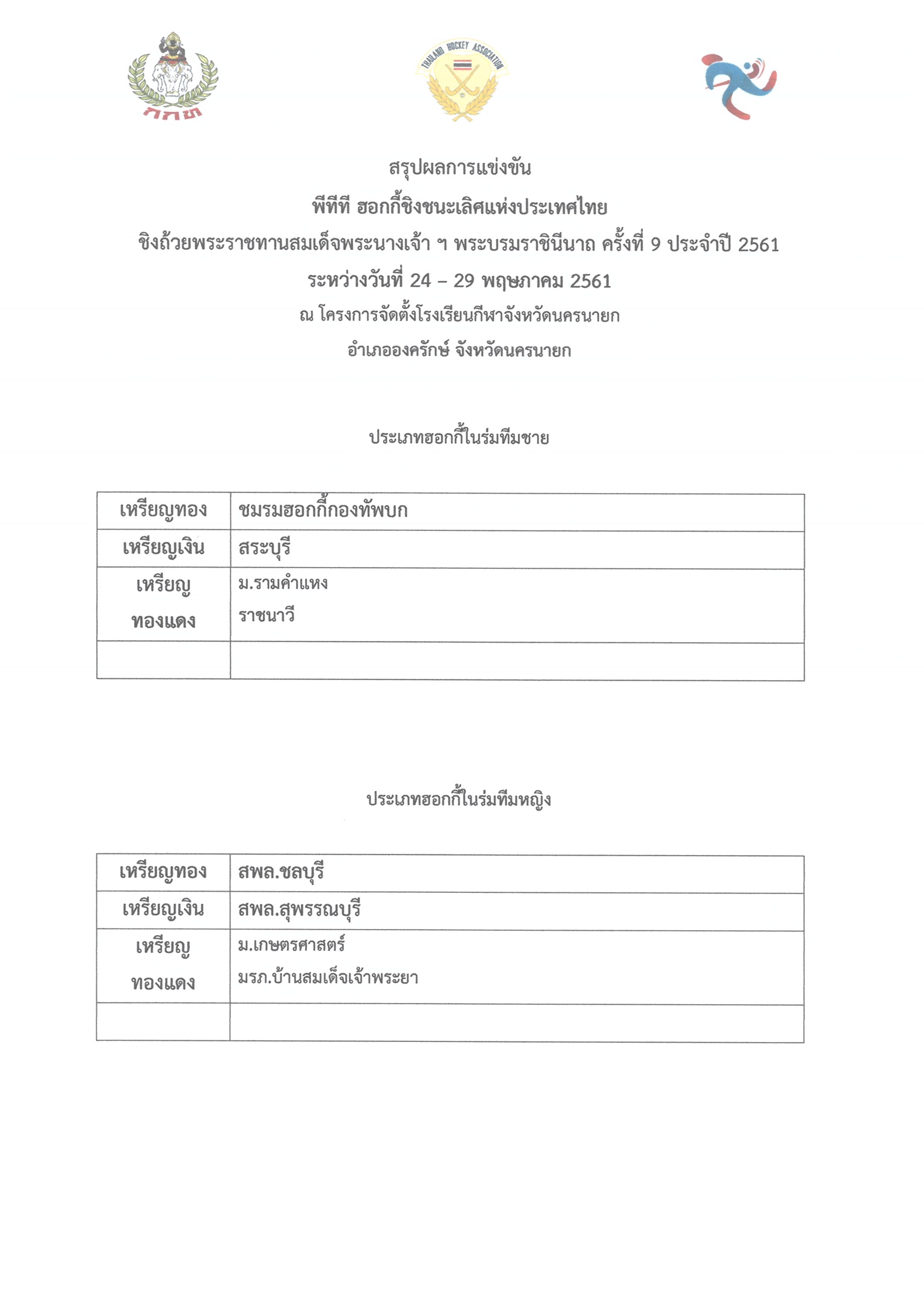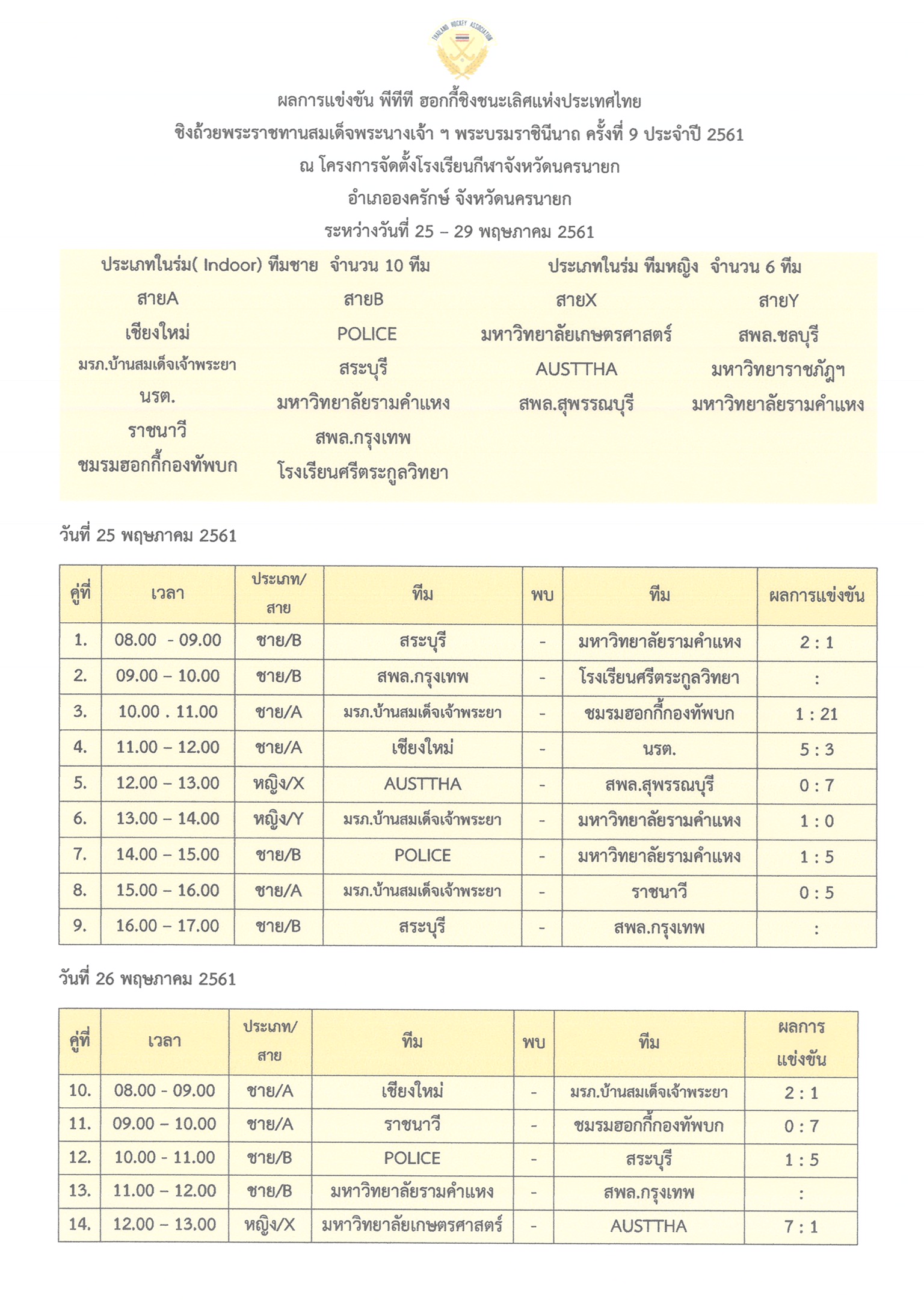 สรุปผลการแข่งขัน ฮอกกี้ ในร่ม
