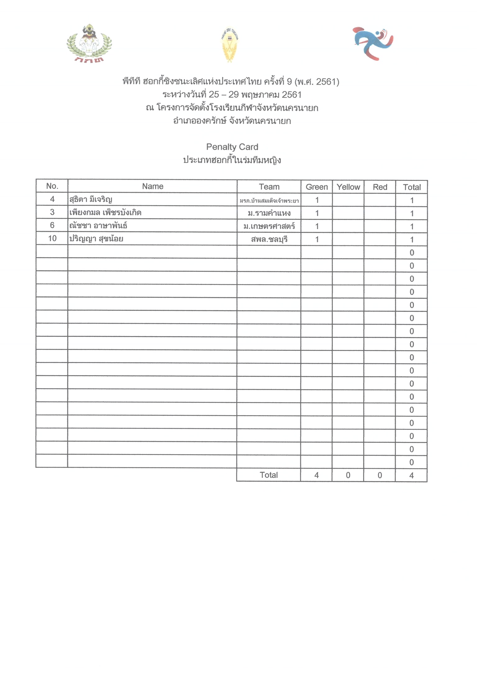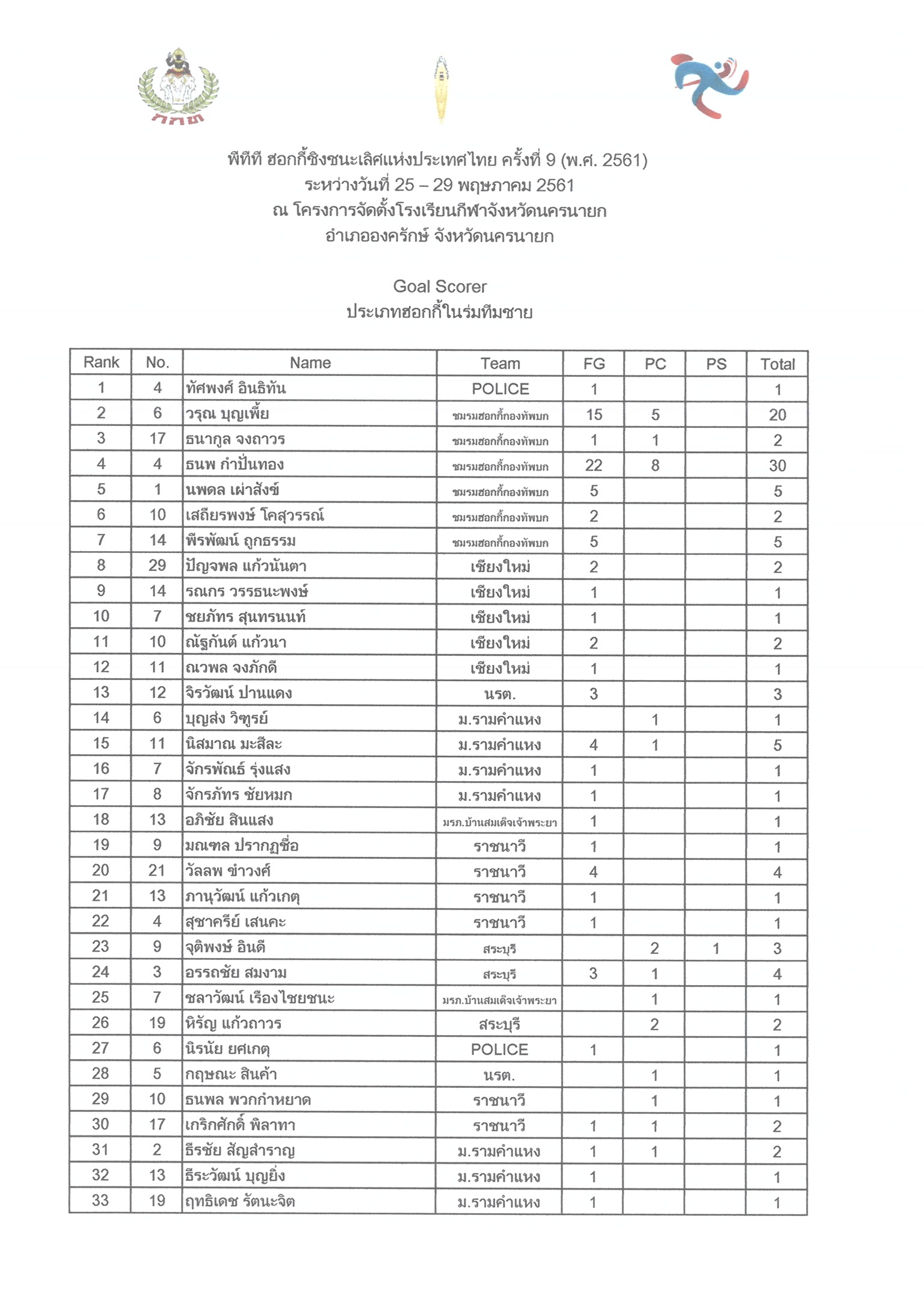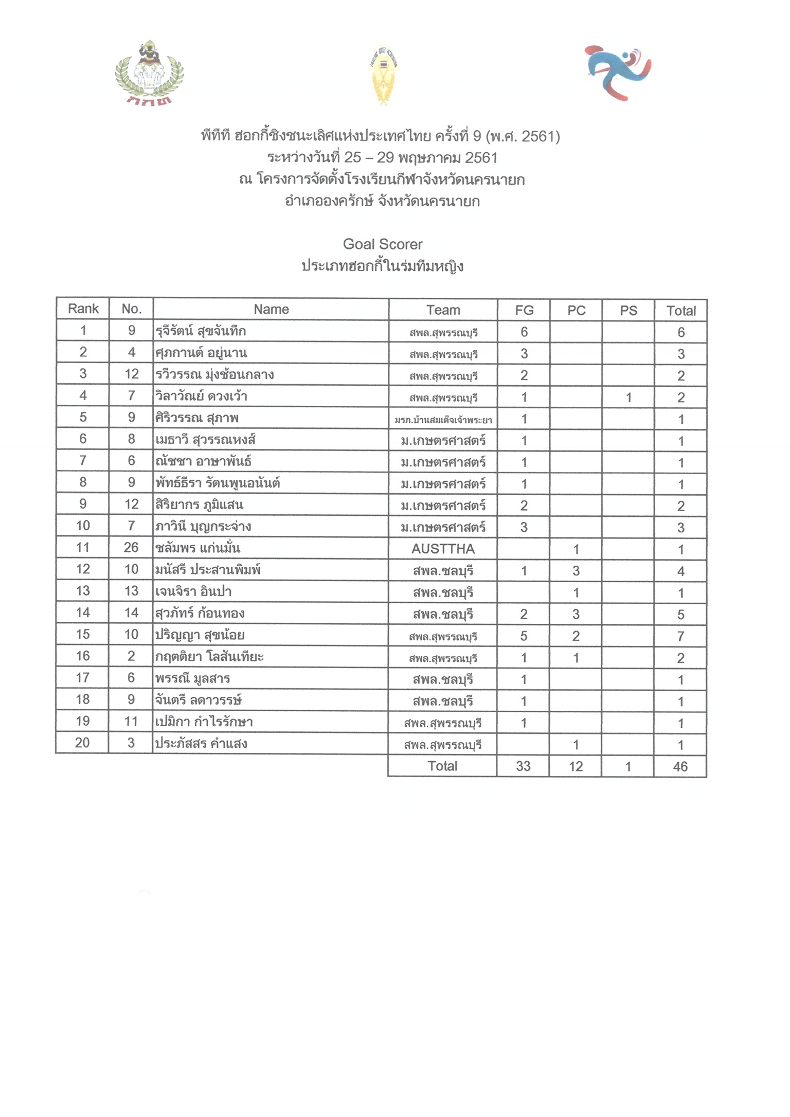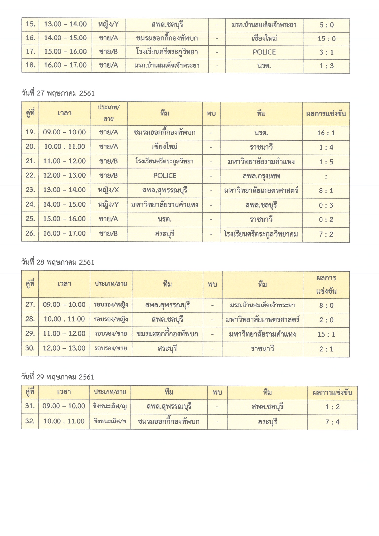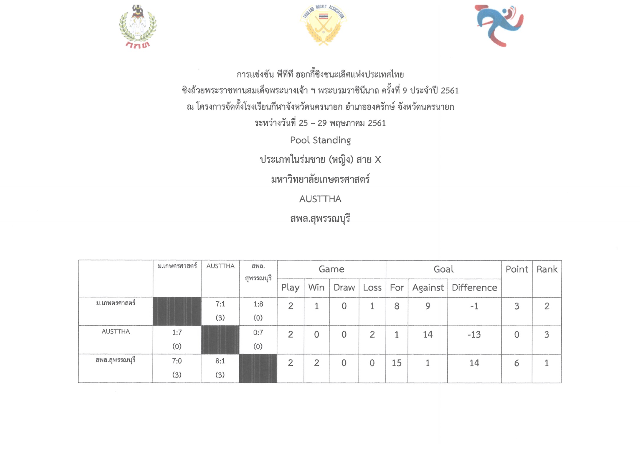 สรุปผลการแข่งขัน ฮอกกี้ ในร่ม