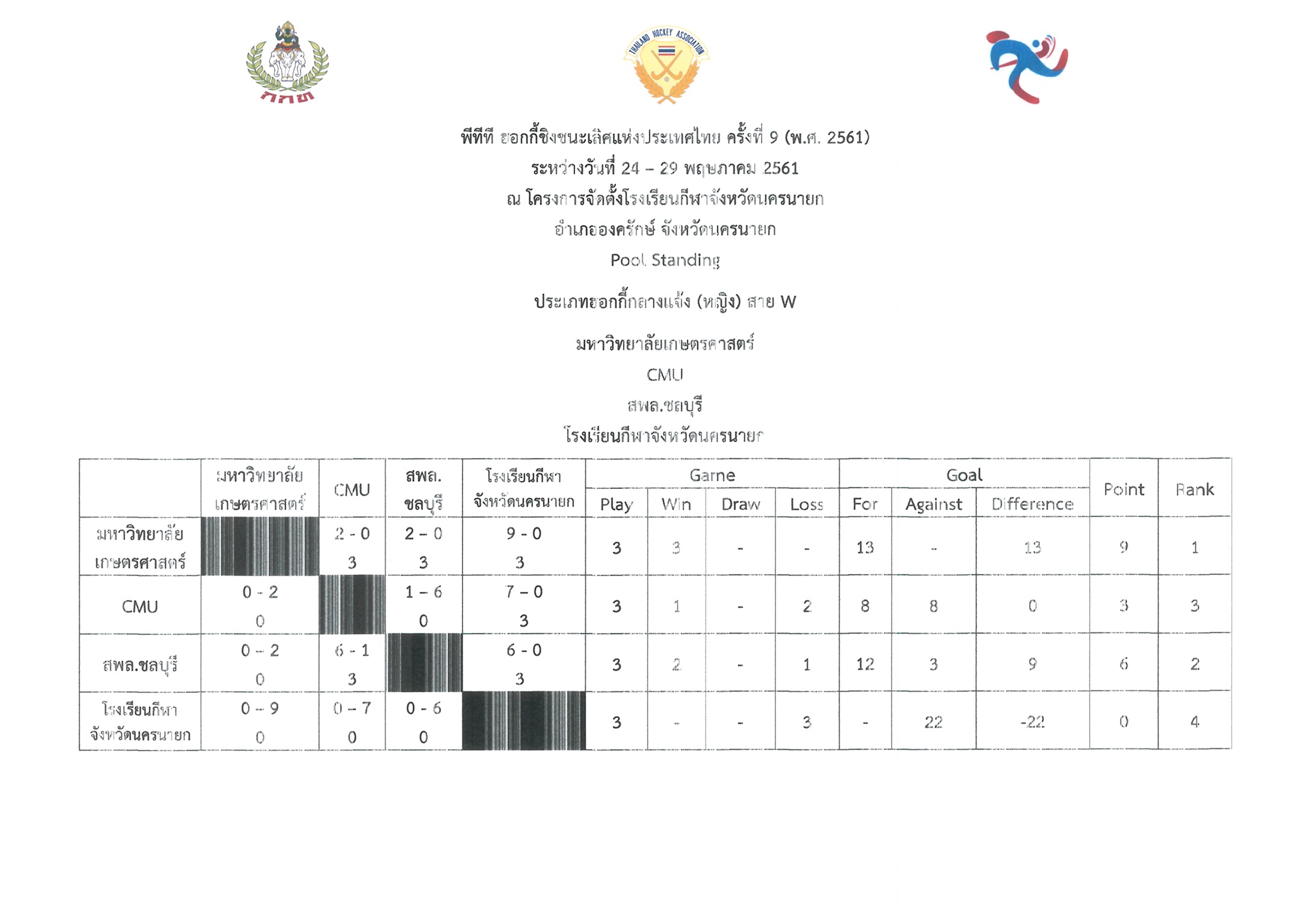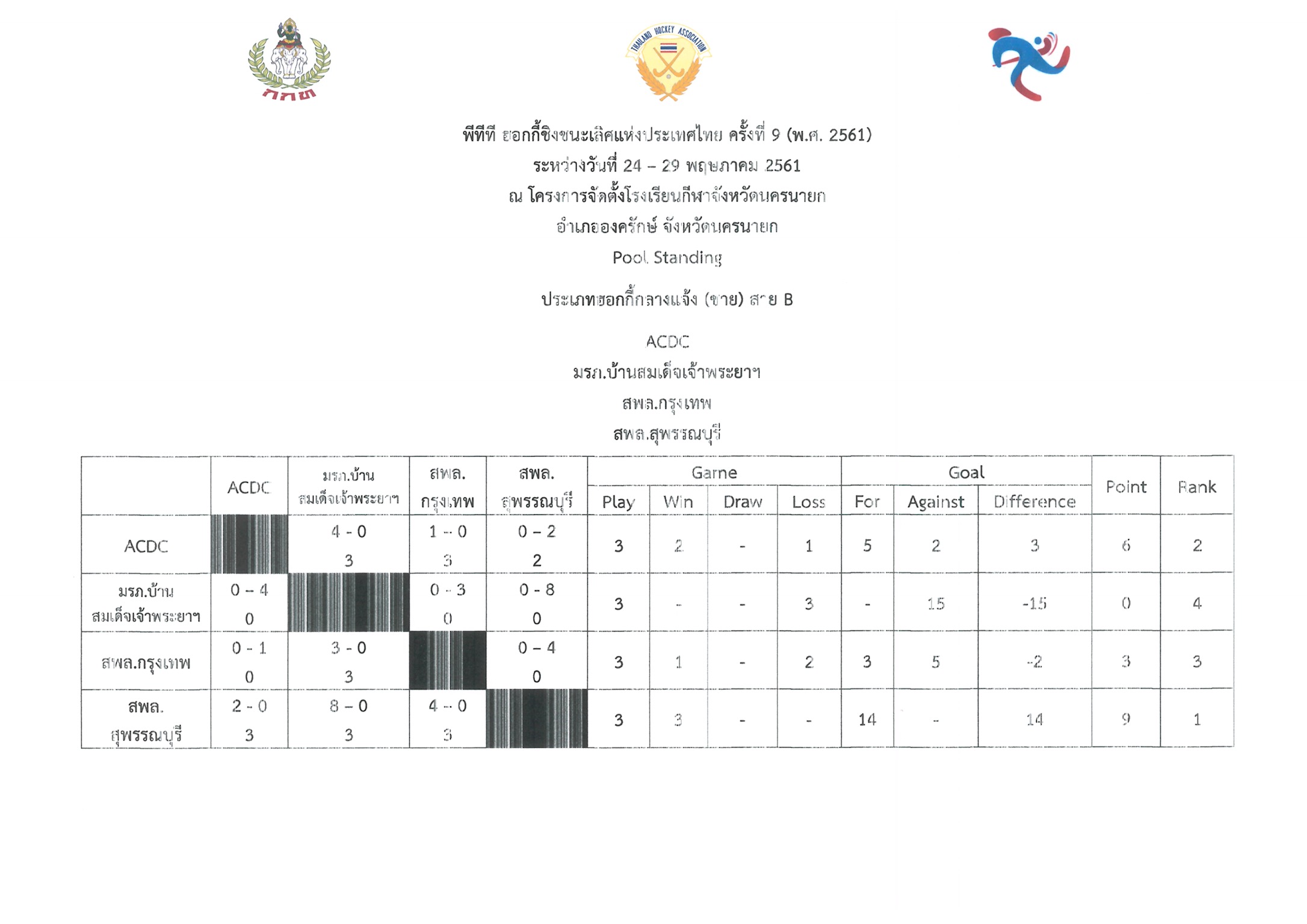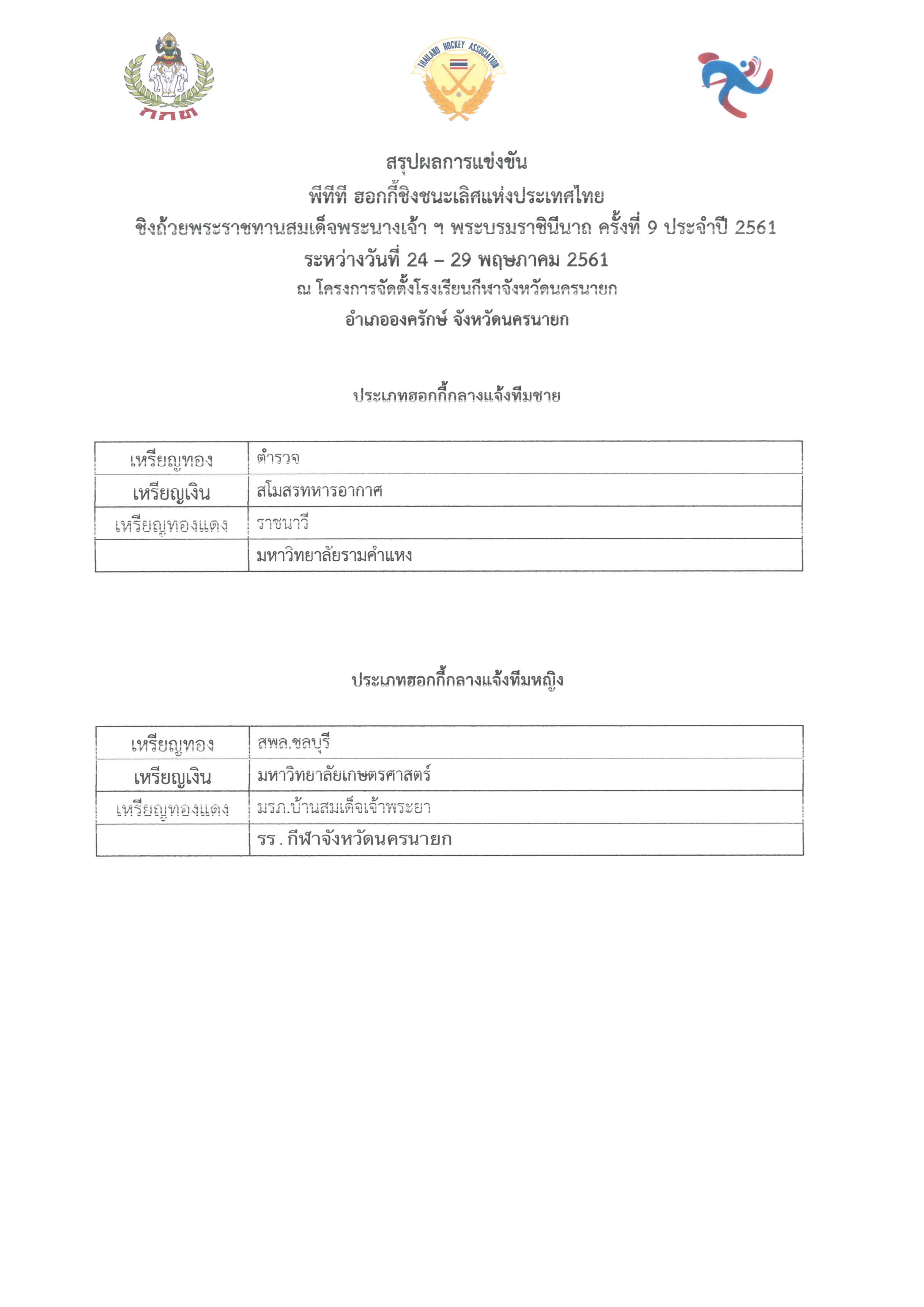 สรุปผลการแข่งขัน ฮอกกี้ กลางแจ้ง