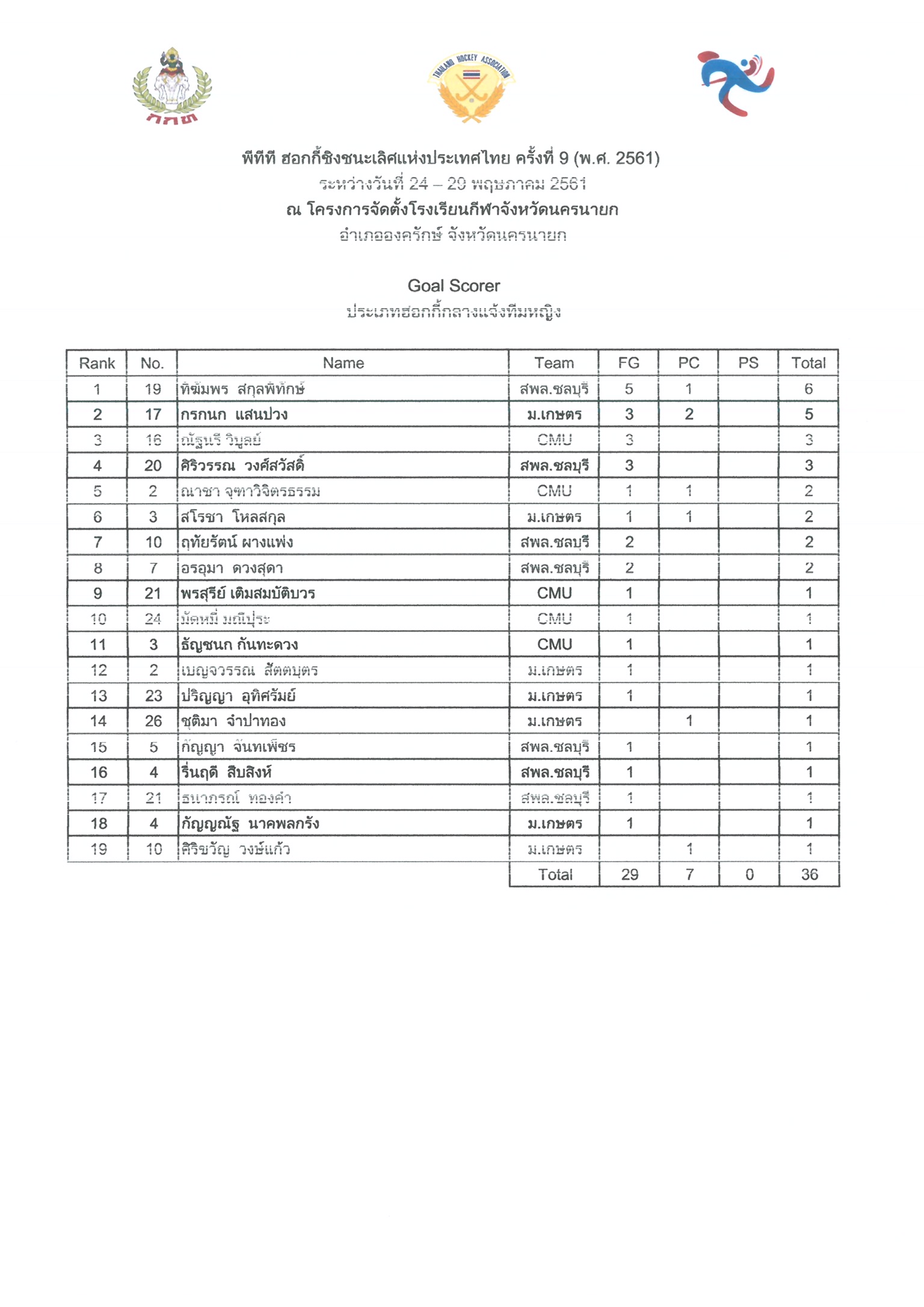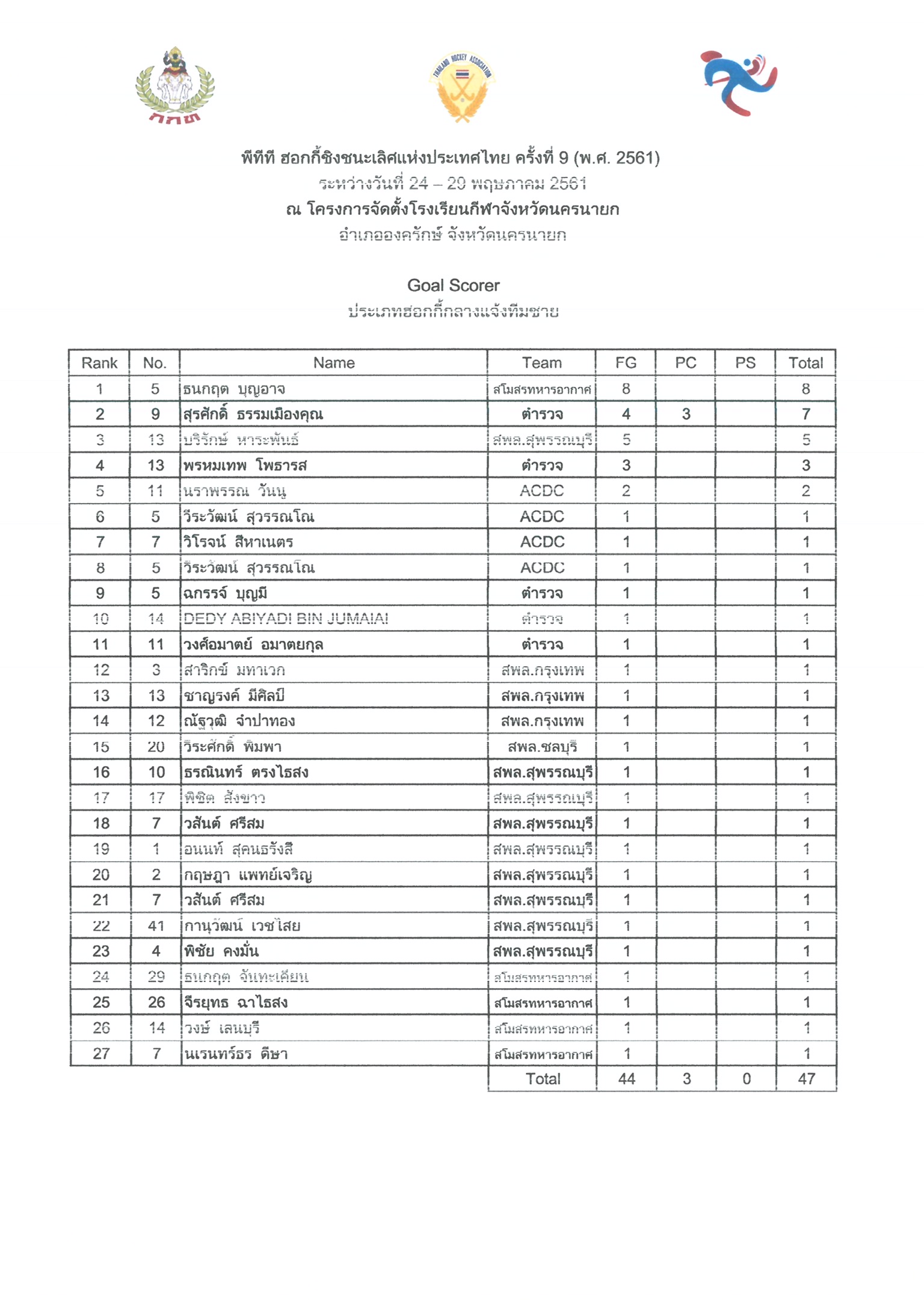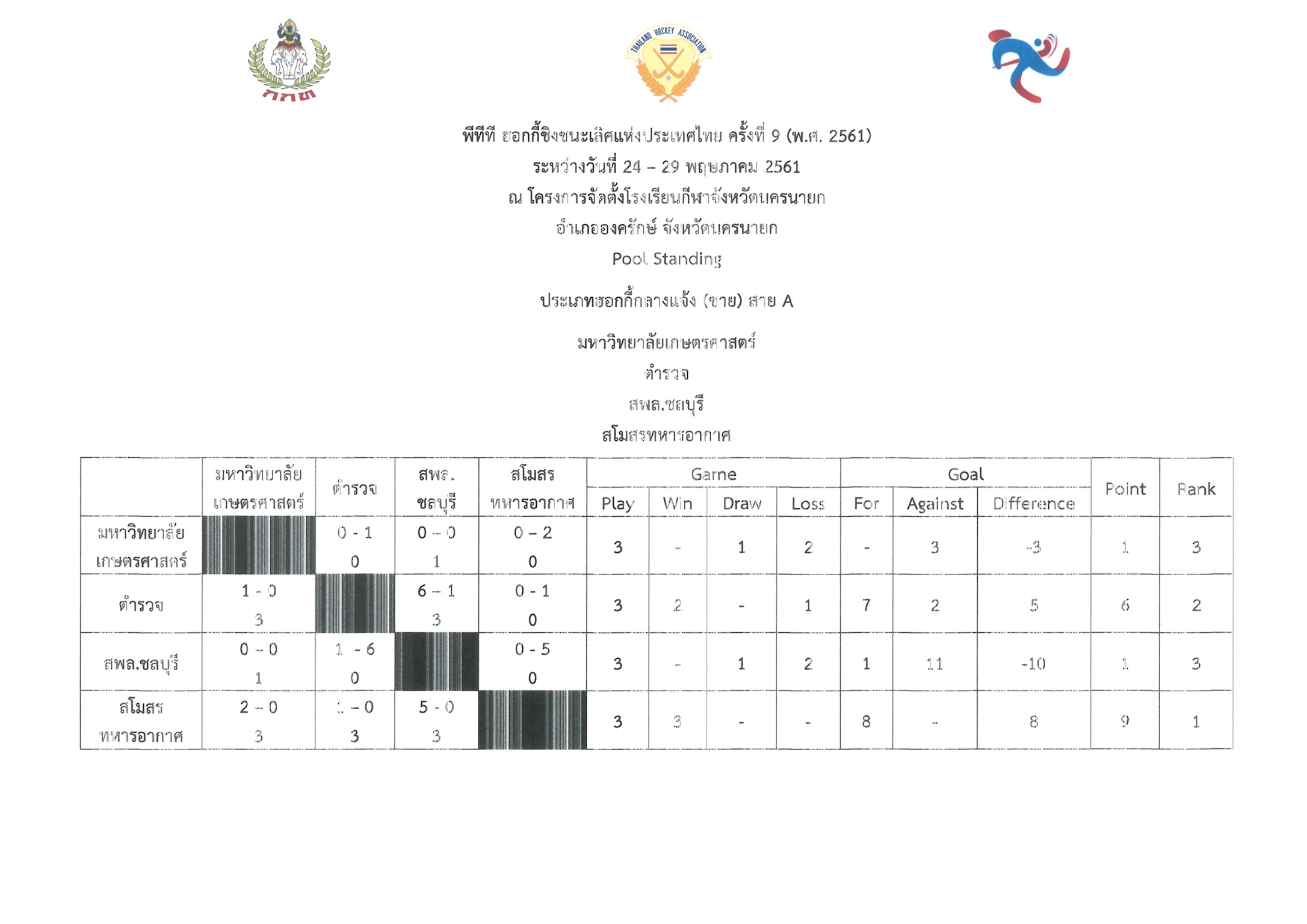 สรุปผลการแข่งขัน ฮอกกี้ กลางแจ้ง