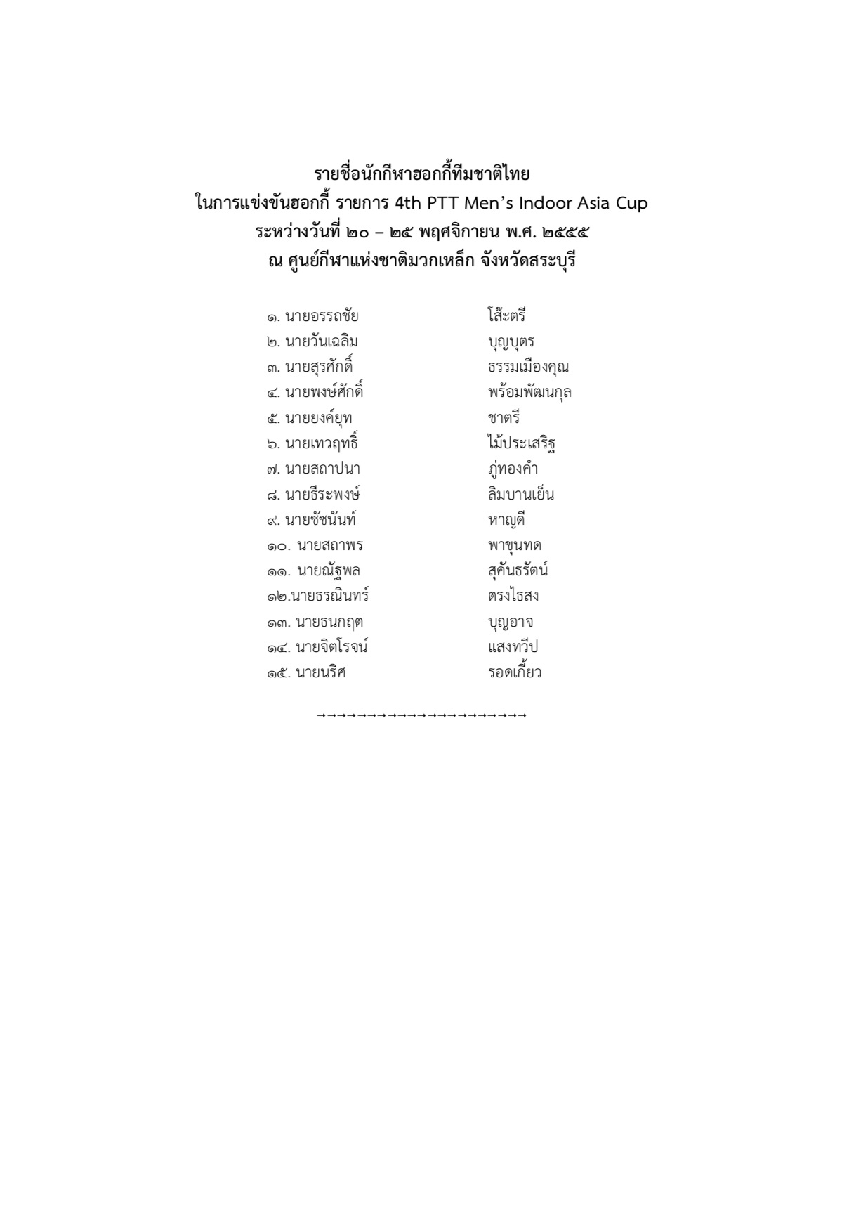 รายชื่อนักกีฬาฮอกกี้ชายทีมชาติไทย รายการ 4th PTT Men’s Indoor Asia Cup 2012