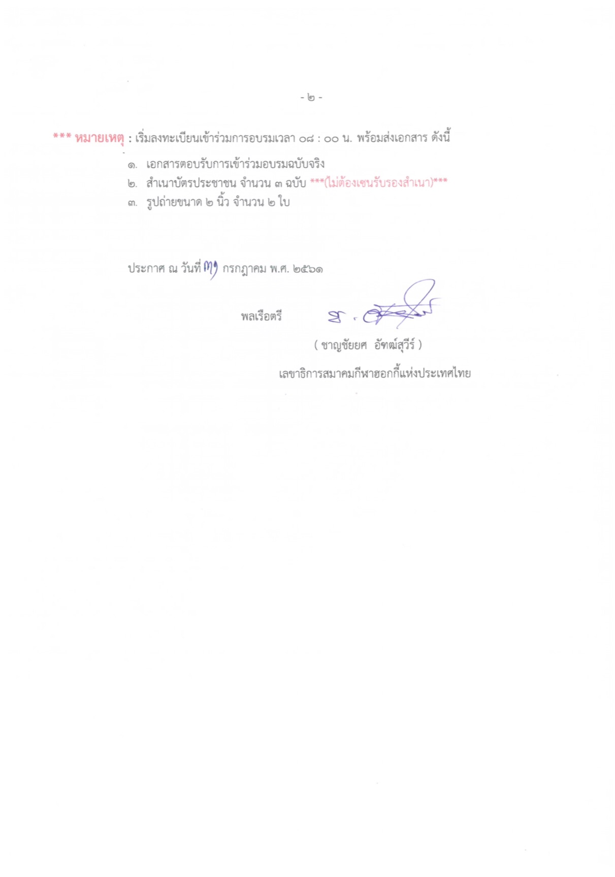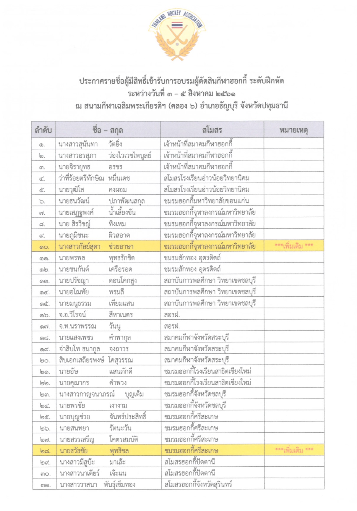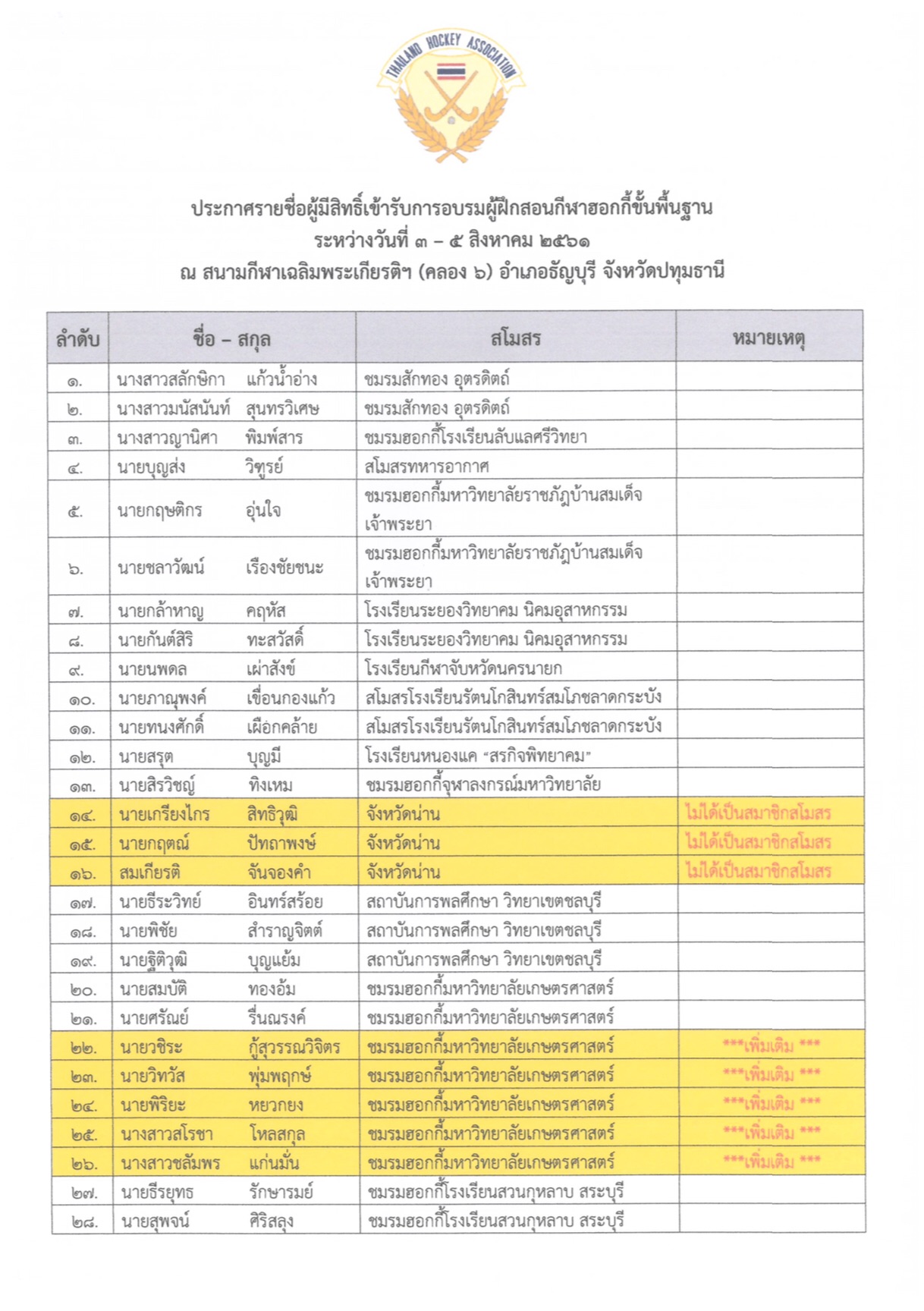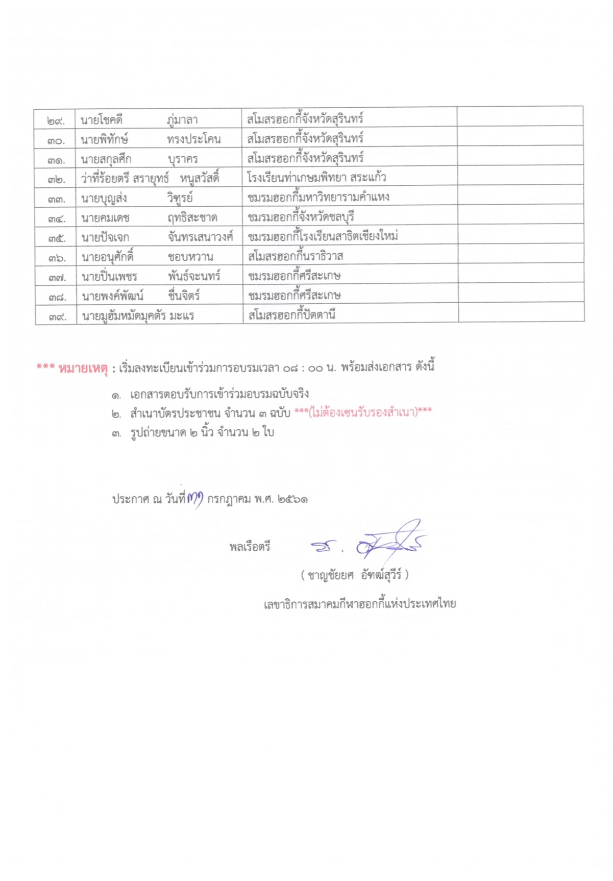 ประกาศ รายชื่อผู้เข้าร่วมอบรมผู้ตัดสินและผู้ฝึกสอน