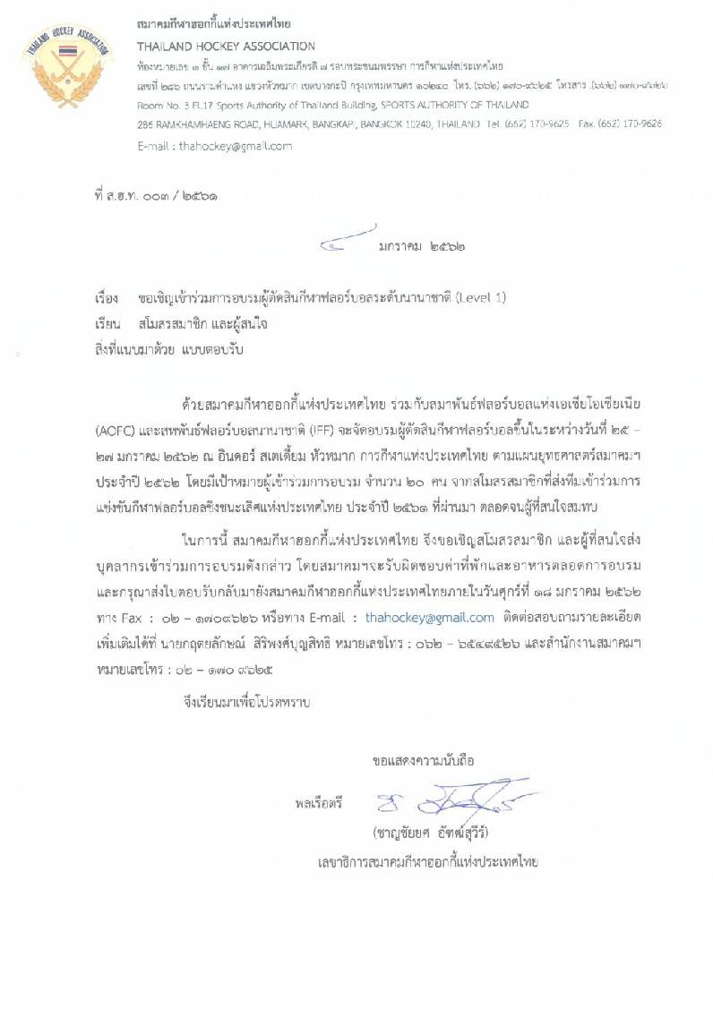 ประชาสัมพันธ์!!! สโมสรสมาชิก และผู้ที่สนใจส่งบุคลากรเข้าร่วมการอบรมผู้ตัดสินกีฬาฟลอร์บอลระดับนานาชาติ (Level 1)