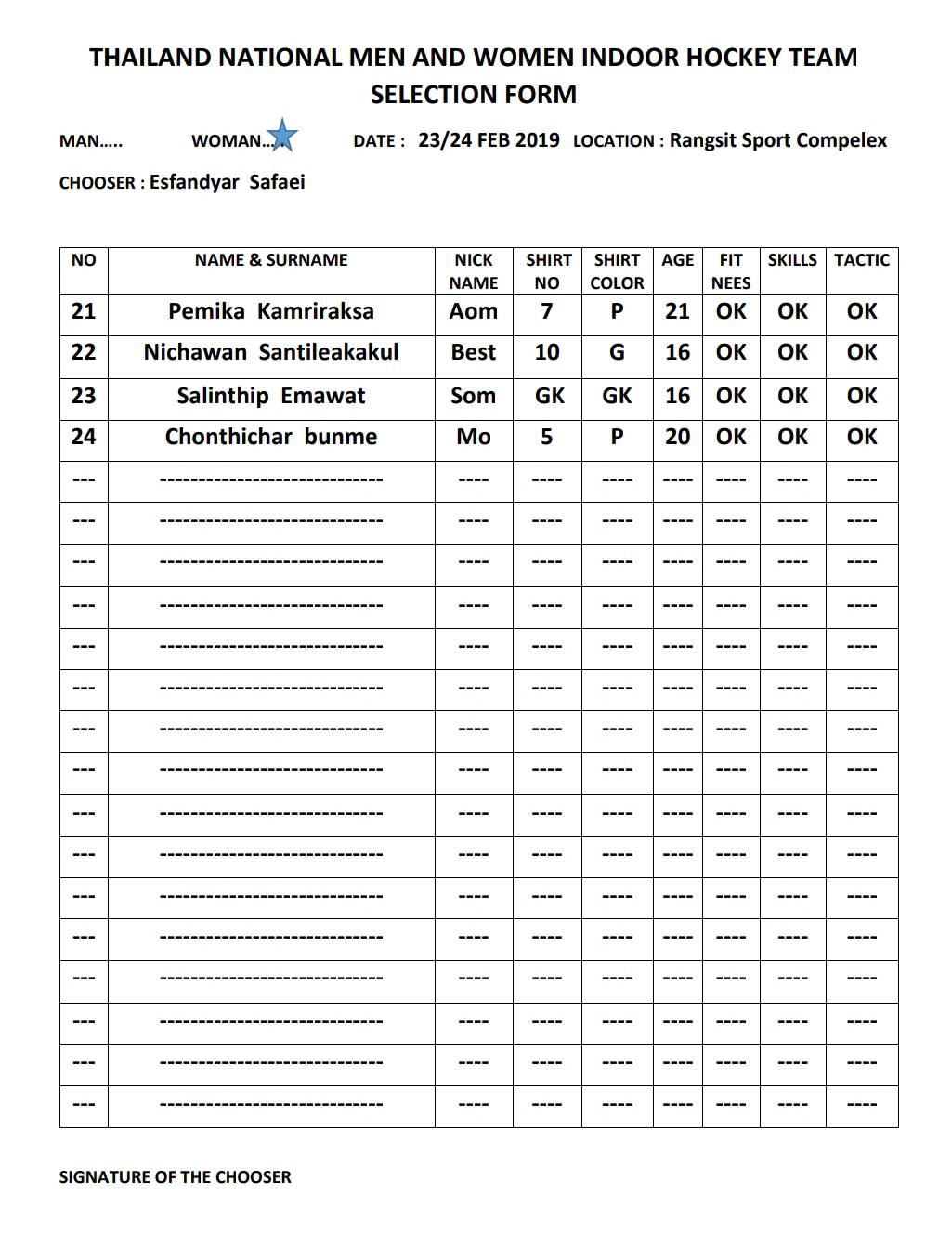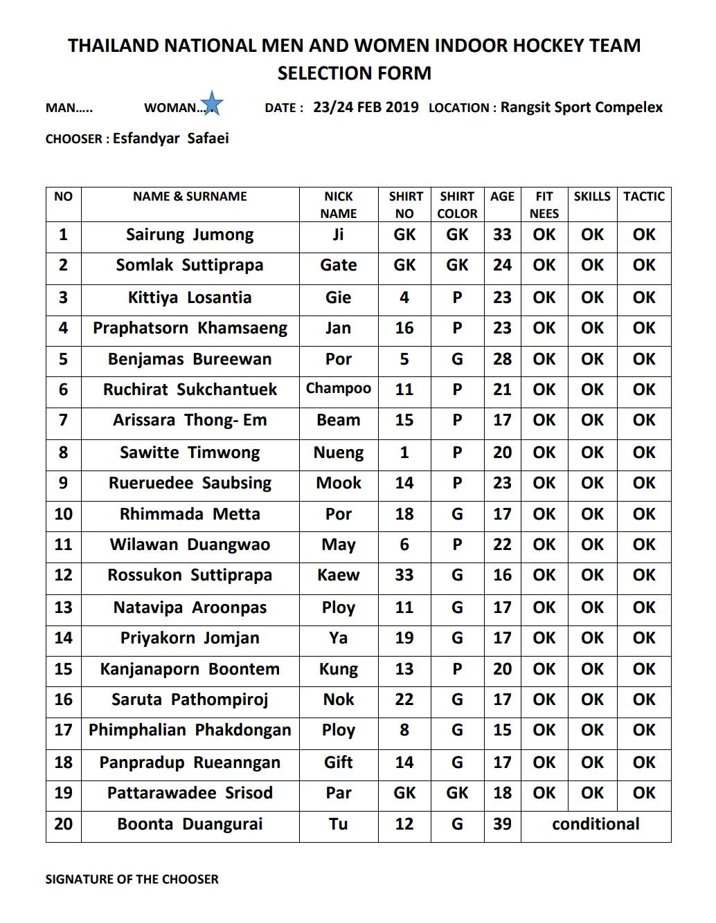 ประกาศรายชื่อผู้มีสิทธิ์เข้ารับการเก็บตัวฝึกซ้อม ประเภททีมหญิง เพื่อเตรียมเข้าร่วมการแข่งขันกีฬา รายการ Men’s and Women’s Indoor Asia Cup 2019 ระหว่างวันที่ ๑๕ – ๒๑ กรกฎาคม ๒๕๖๒ ณ อาคารสนามกีฬาอเนกประสงค์ เทศบาลเมืองชลบุรี หมายเหตุ : ให้นักกีฬาผู้ที่มีชื่อมารายงานตัวในวันที่ ๕ มีนาคม ๒๕๖๒ เวลา ๑๗.๐๐ น. ณ สนามกีฬาเฉลิมพระเกียรติสมเด็จพระนางเจ้าฯ พระบรมราชินีนาถ ๖๐ พรรษา (คลอง ๖) อำเภอธัญบุรี จังหวัดปทุมธานี รวมทั้งอยู่ฝึกซ้อมกับทางผู้ฝึกสอน จนถึงวันที่ ๑๑ มีนาคม ๒๕๖๒ ระยะเวลาประมาณ ๑ สัปดาห์ หากนักกีฬาที่มีรายชื่อไม่มารายงานตัวถือว่าสละสิทธิ์ในการเป็นนักกีฬาฮอกกี้ ในร่ม ทีมชาติไทย ดาวน์โหลดเอกสารเพิ่มเติม >>>ประกาศรายชื่อผู้มีสิทธิ์เข้ารับการเก็บตัวฝึกซ้อม ทีมหญิง
